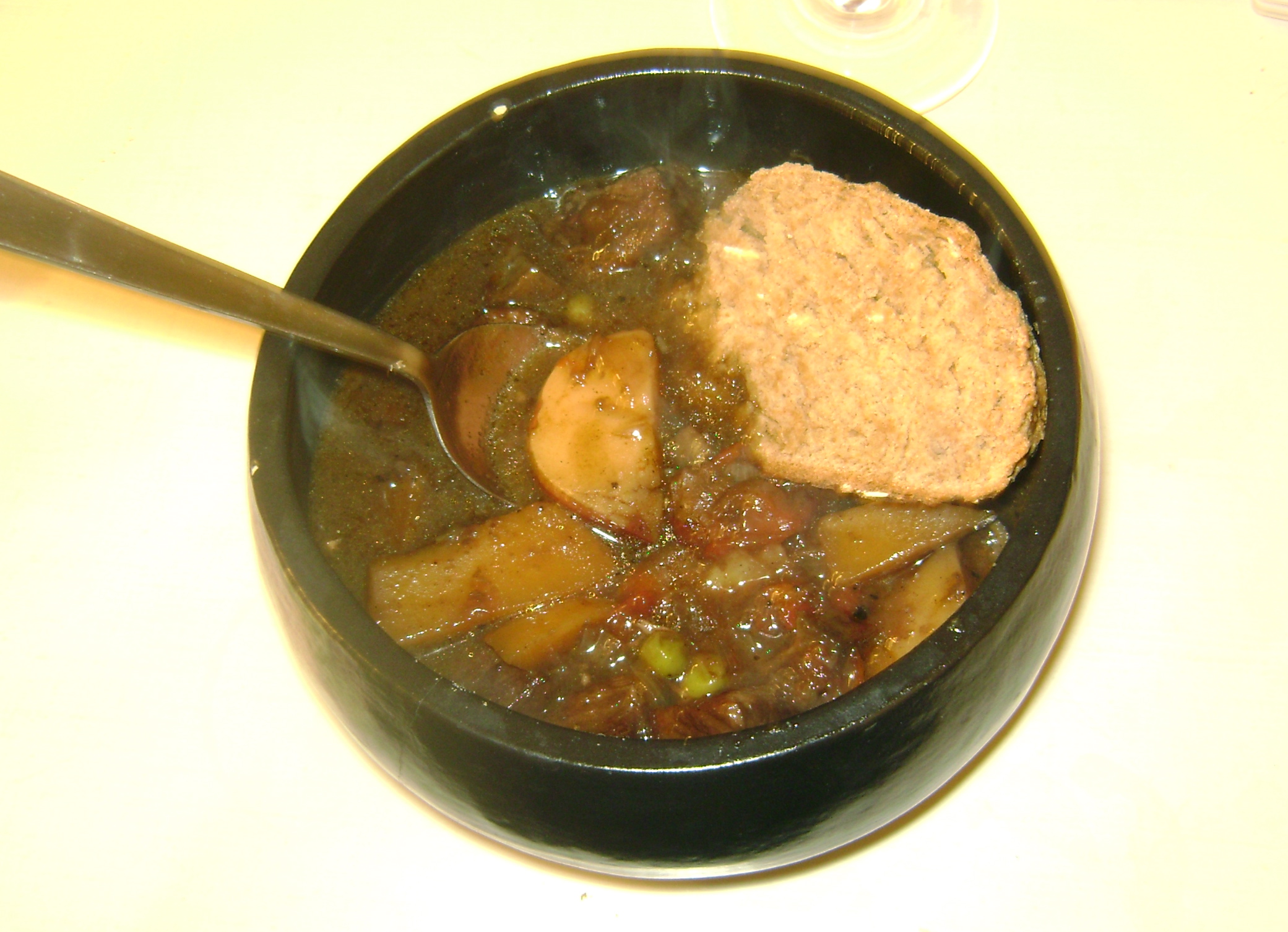 I didn’t get a good shot of this one because there were a bunch of us eating it and it went fast! This is an Irish brown bread he made from this recipe. He was inspired by the bread served at deVere’s Irish Pub as there’s one in Davis now as well as Sacramento.Which is probably while it went delicious in this beef stew (again, sorry for the photo! hunger triumphed!)