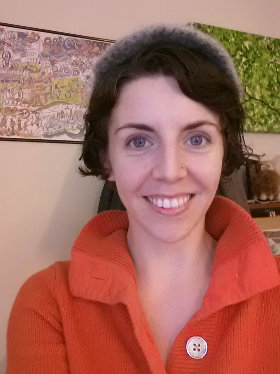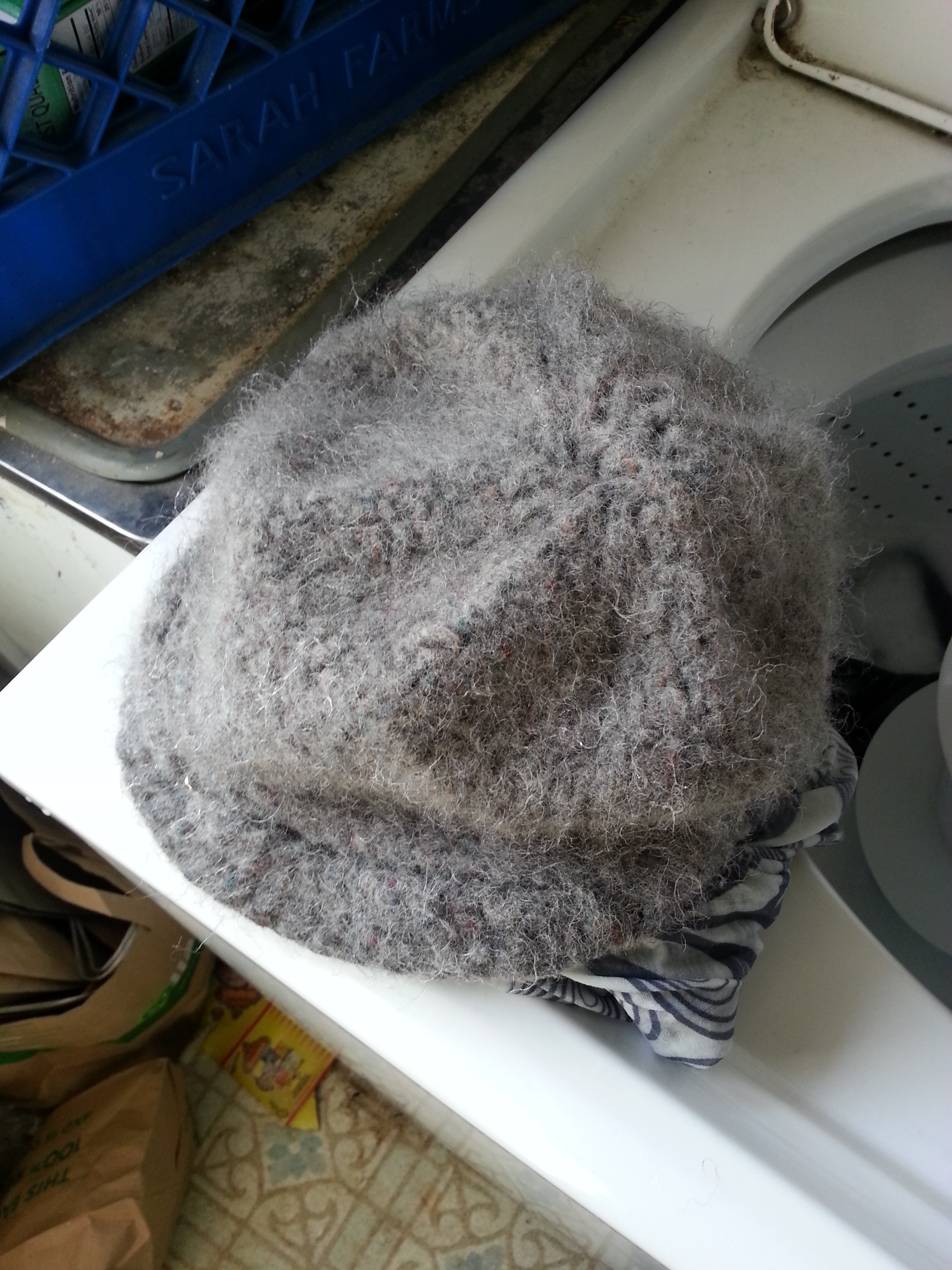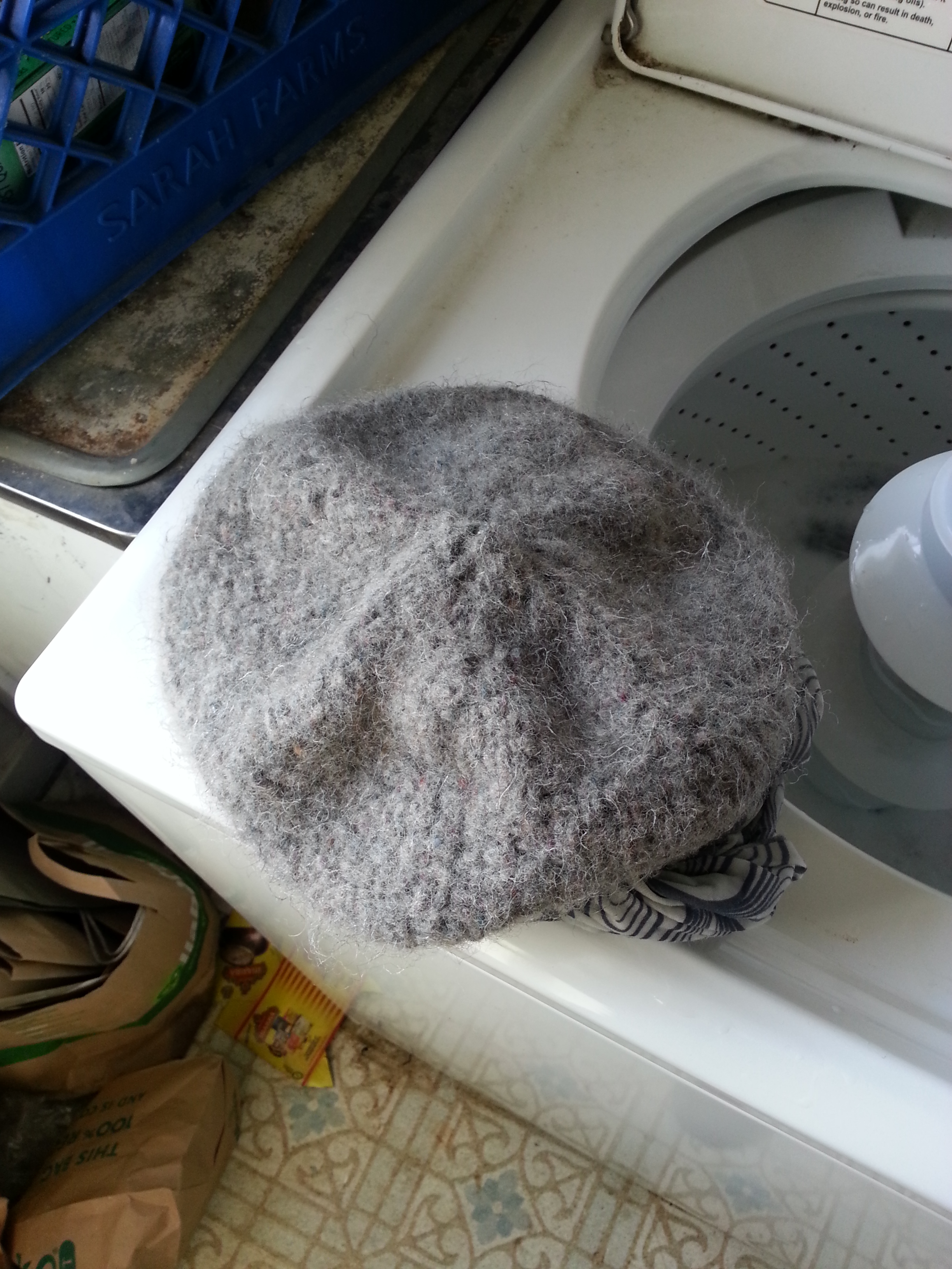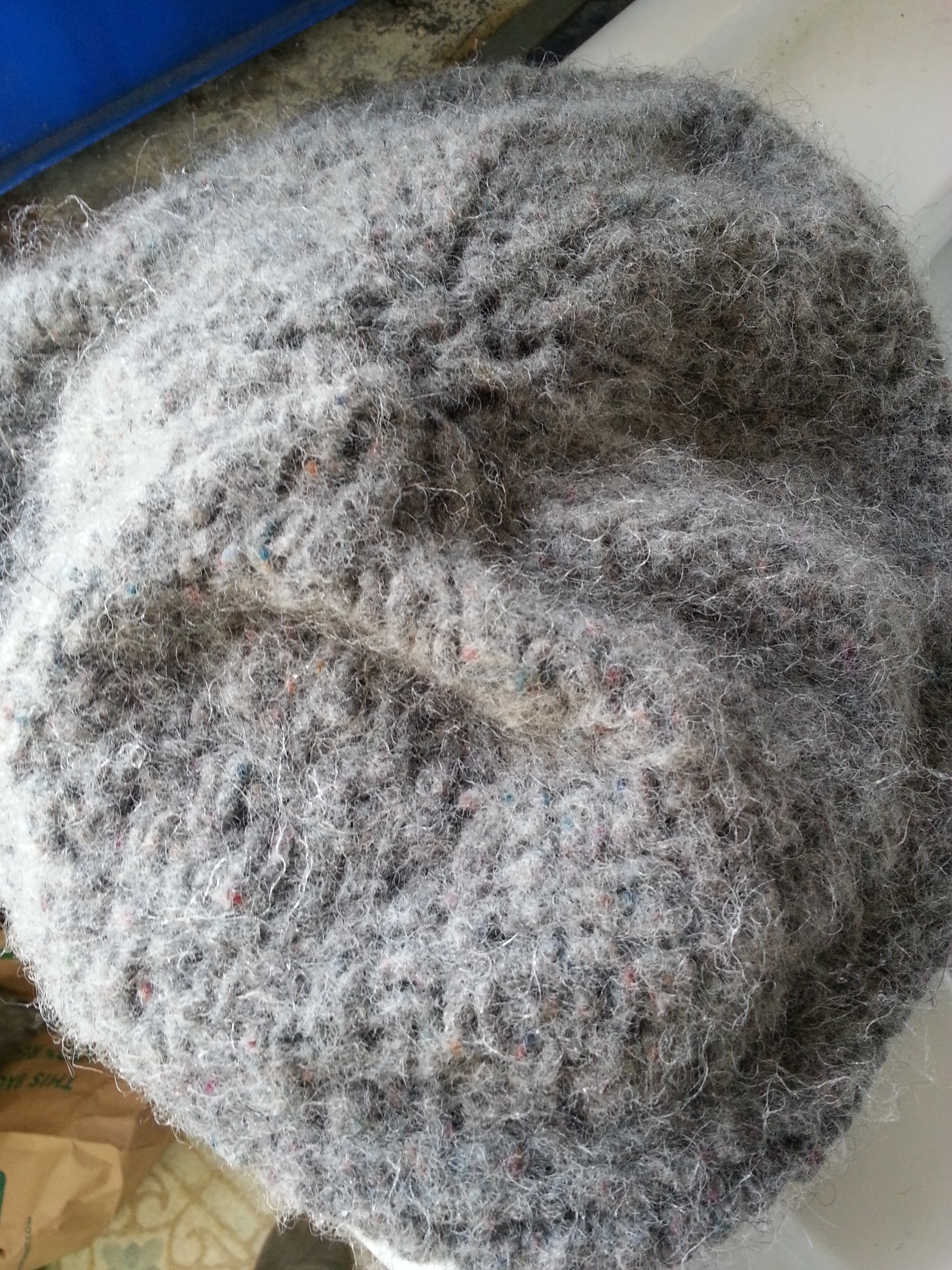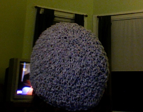 This is a really old project, but the loose knitting didn’t matter with this very simple garment. It’s the aptly named Entry Level Capelet by Haley Waxberg. It’s a good pattern for a hand dyed variegated yarn like this one. The color pooling was not even, but that gives it an interesting self-spiraling effect at the top. (side note: you can tell how old the photo below is by how long my hair was!)