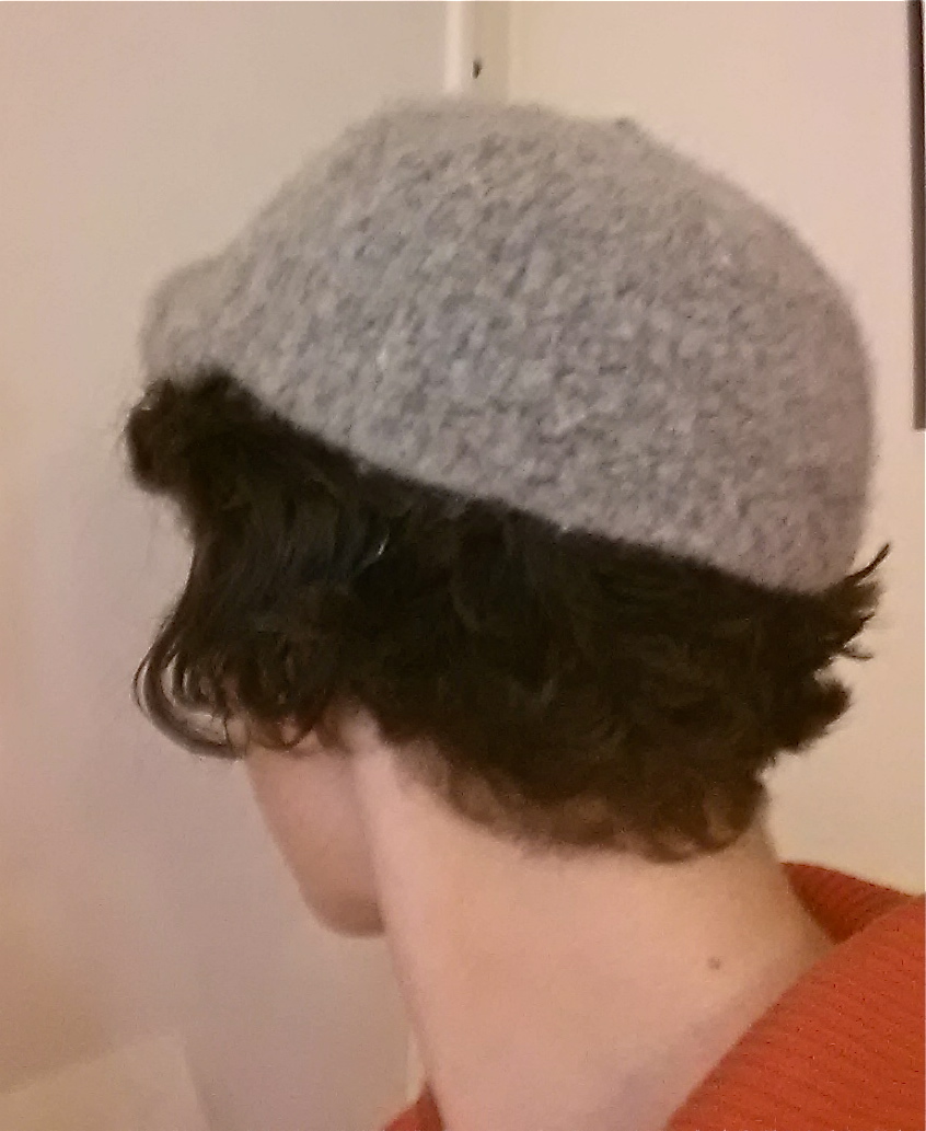See how loose it was in the back? It barely stayed on my head, and that was before it stretched out. I even overlapped the ends and did two buttons to try to keep it in place, to no avail.