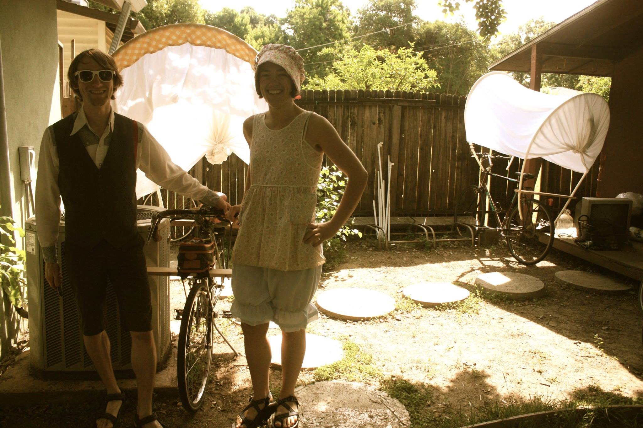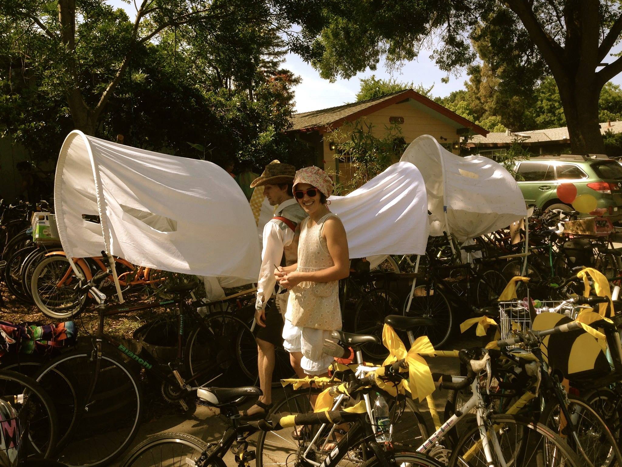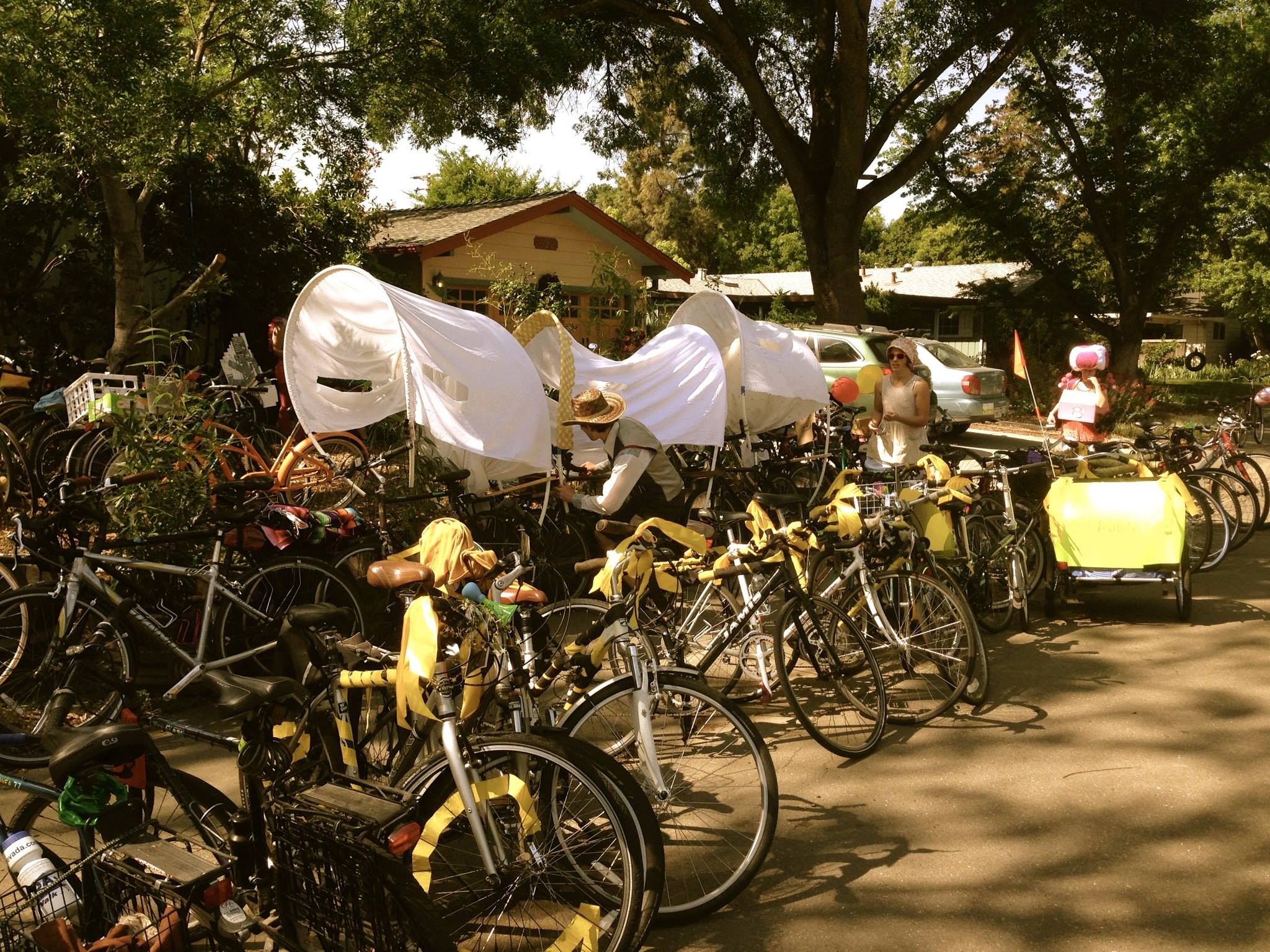 The Costumes No Oregon Trail game would be complete without travelers and their means of transport! Humans and bikes both underwent some nifty transformations in preparation for the journey. Here’s most of our crew at the start of the day: