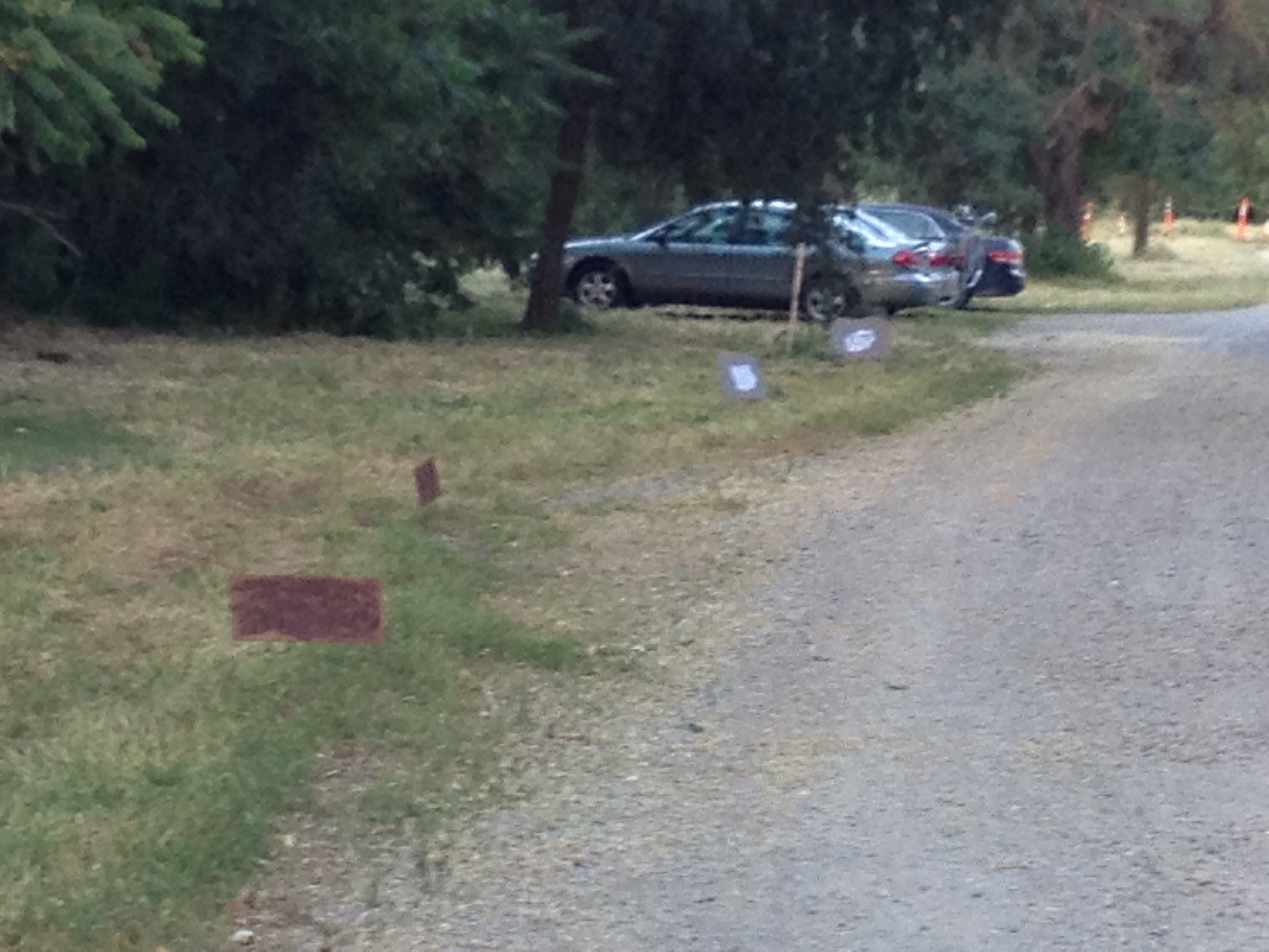 Since we were hosting at a rather rustic venue down an unpaved road, we took advantage of the opportunity to make it part of the trail, with painted cardboard signposts and gravestones: