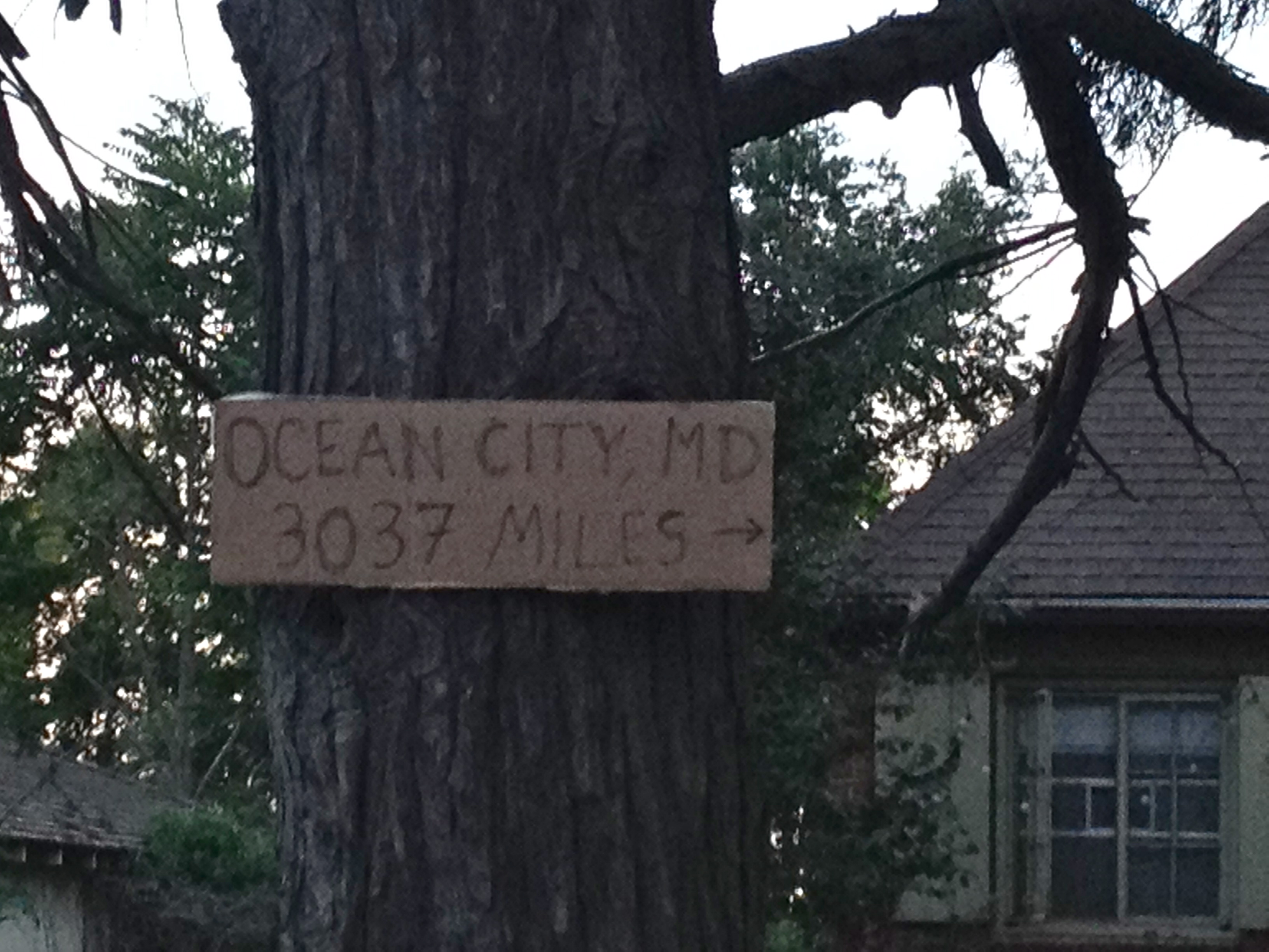 Some of out team members had a tall table that was already rather DIY to begin with (the top was an old door), so we nailed the sign to the front of it.