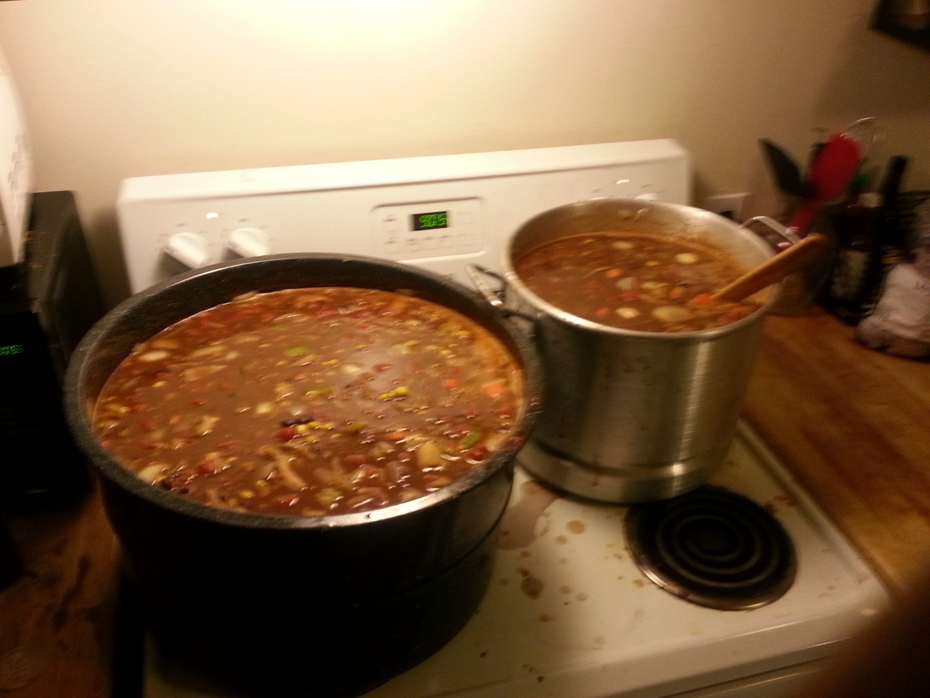 For food, we had chili, cornbread, chips, watermelon, and trail mix (the last was my idea—I couldn’t resist the pun!) Have you ever wondered what chili for 200 people looks like? Would you believe that this isn’t even all of it??