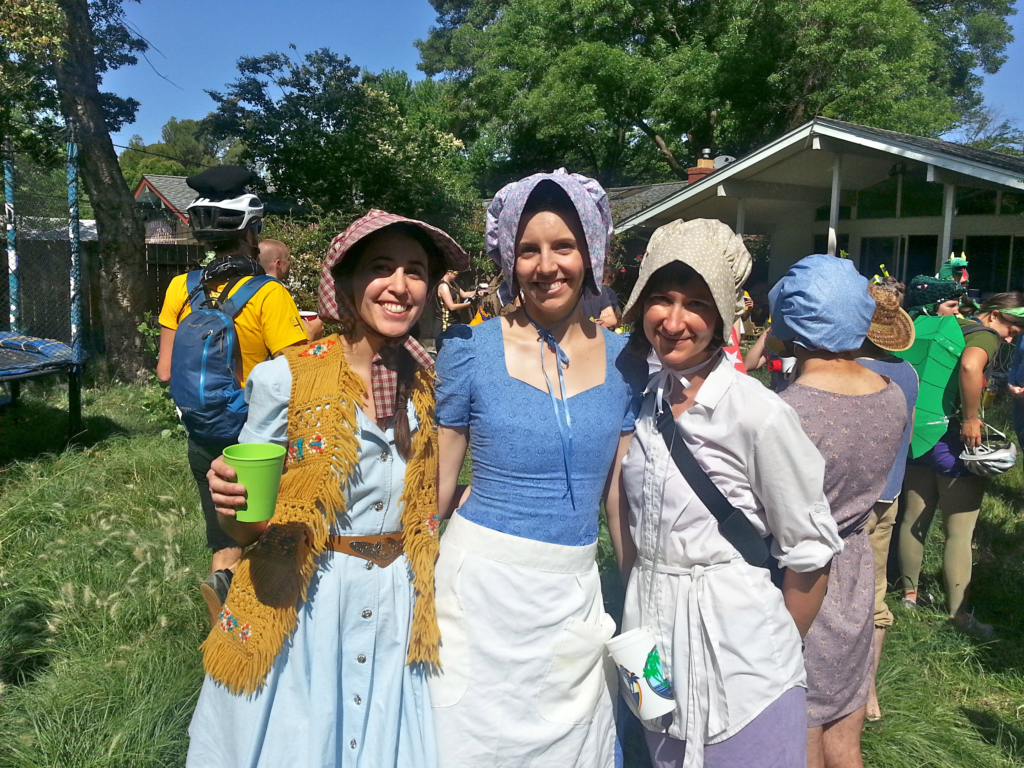 The Setting First, a little bit of background. We were part of an all-day event that could best be described as a moving/progressive party, with costumes, on bicycles. Everyone was in teams, the teams had themes (hence the co-ordinated costumes), and at each place we stopped for food and drink, one team hosted and the other teams competed in games. So as Team Oregon Trail, we needed to provide food, drinks, games, and of course, ambiance for our guests.