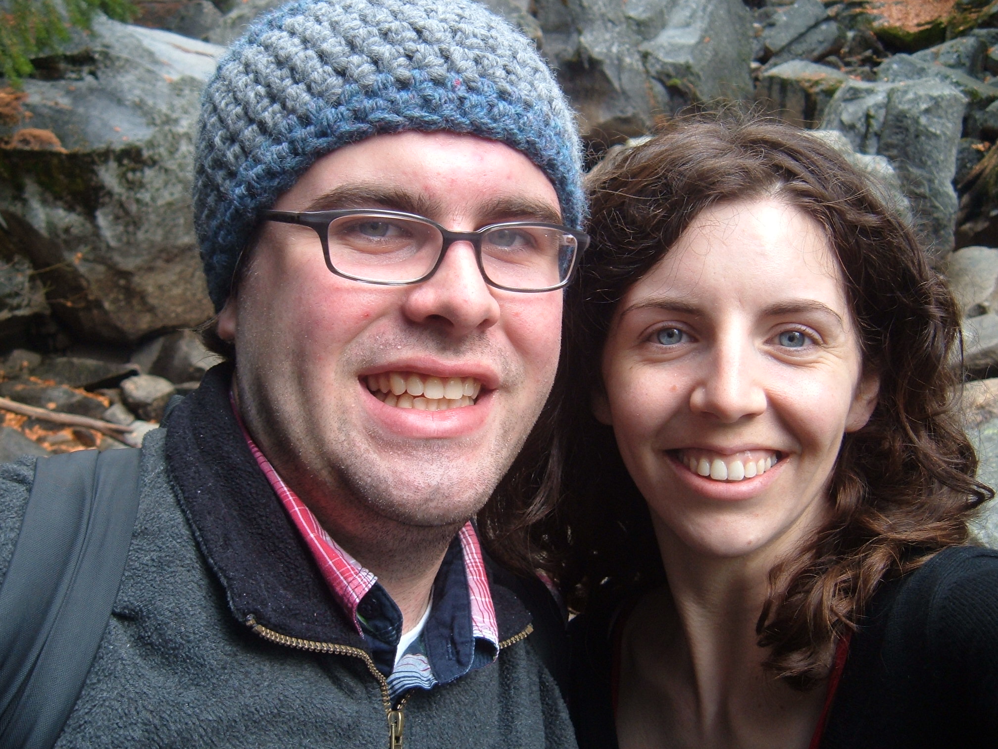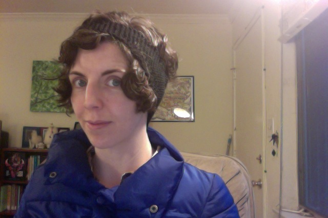 That’s me trying to keep my hair under the earflaps without success.