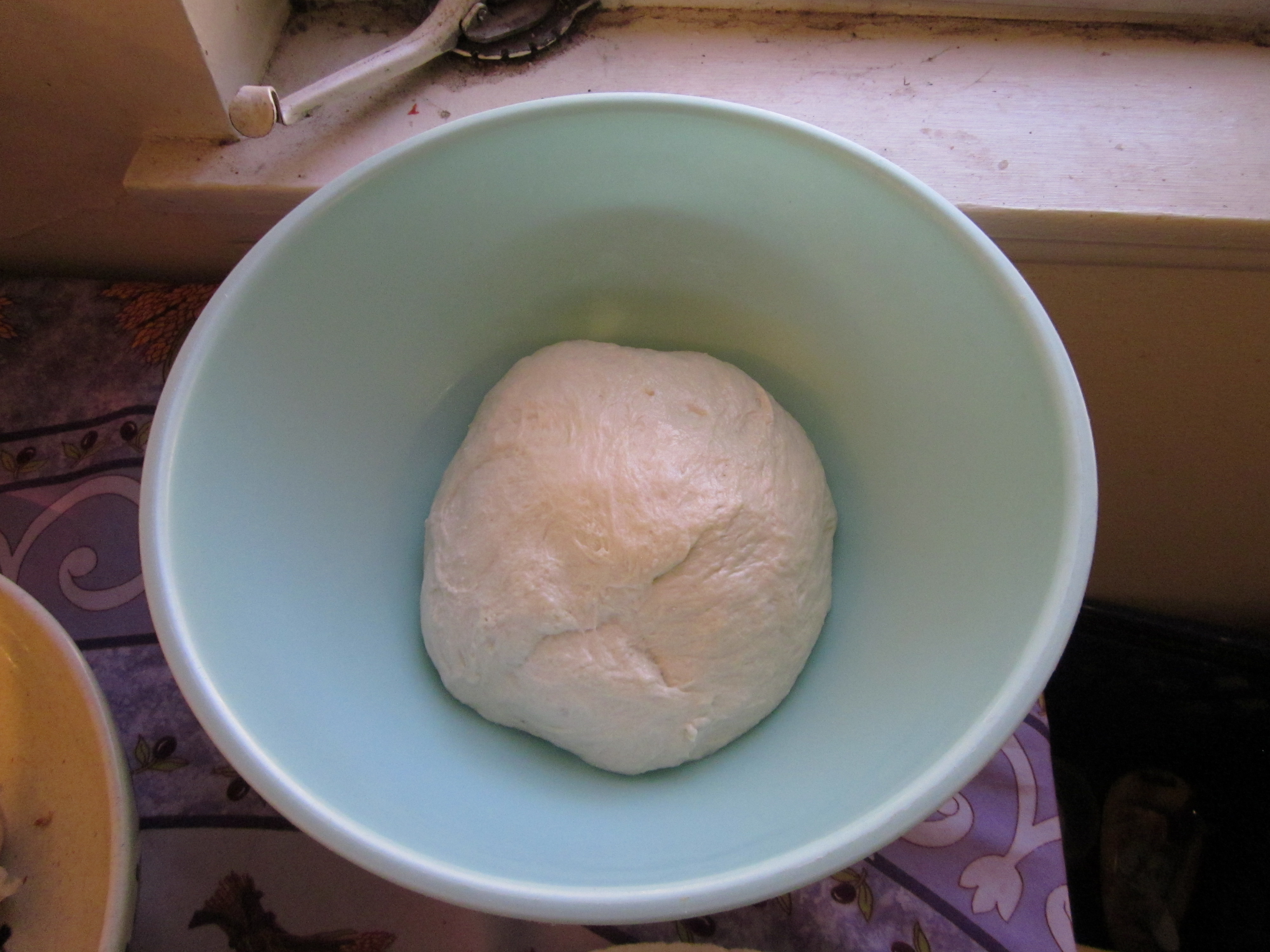No photos of the action because I was doing this by myself, but I used the technique in this video that I wrote about in my previous post on bread. The difference I noticed with sourdough is that, due to the stickiness, flouring your hands will not keep the dough from sticking to your hands. You either need to wet your hands and keep re-wetting them as you knead, or lightly oil them. I tried both and I prefer oil a little more, but I tried both and either works.
