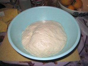 No modifications to this technique—oiled surface made things go smoothly. After this step though dough needs to rise until it has fully doubled. I had to put it into a bigger bowl. Here’s the before and after fully doubled: