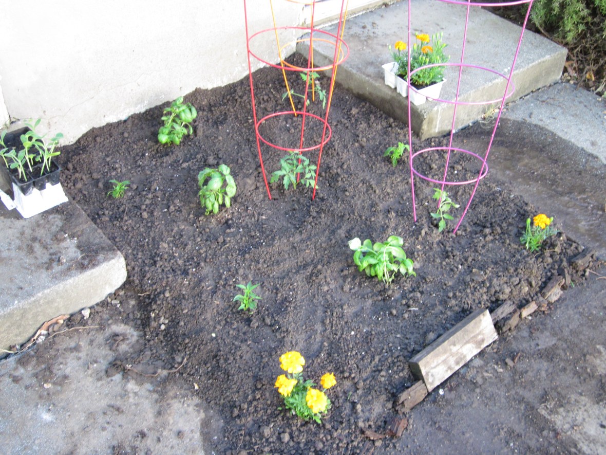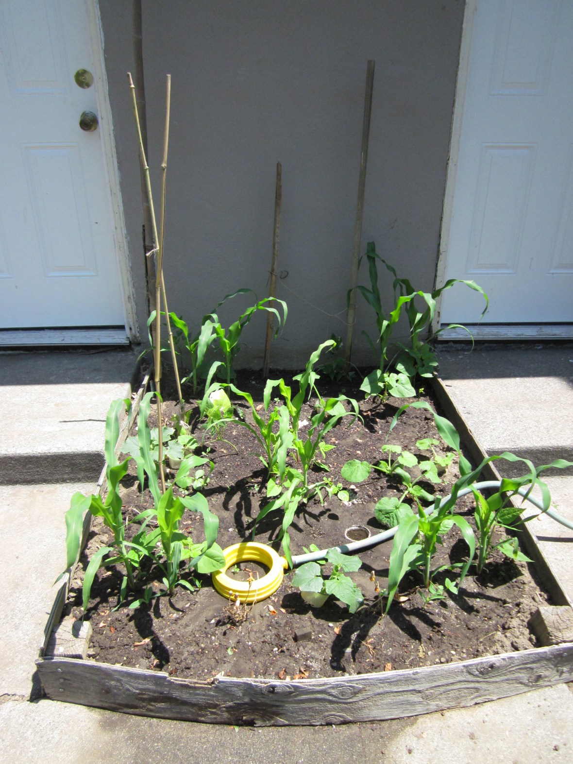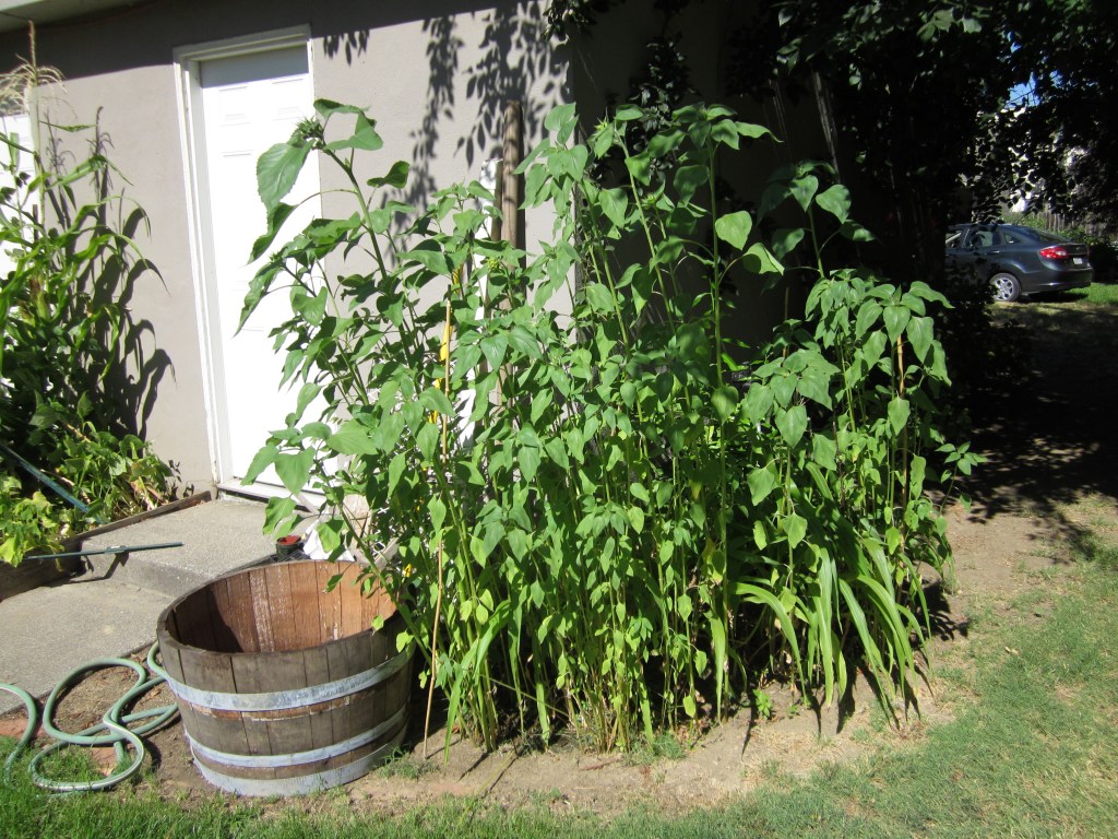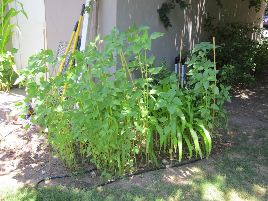 If you’re keeping track, you may see that I have corn, cucumbers, peppers, green beans, okra, tomatillos, and four kinds of tomatoes!