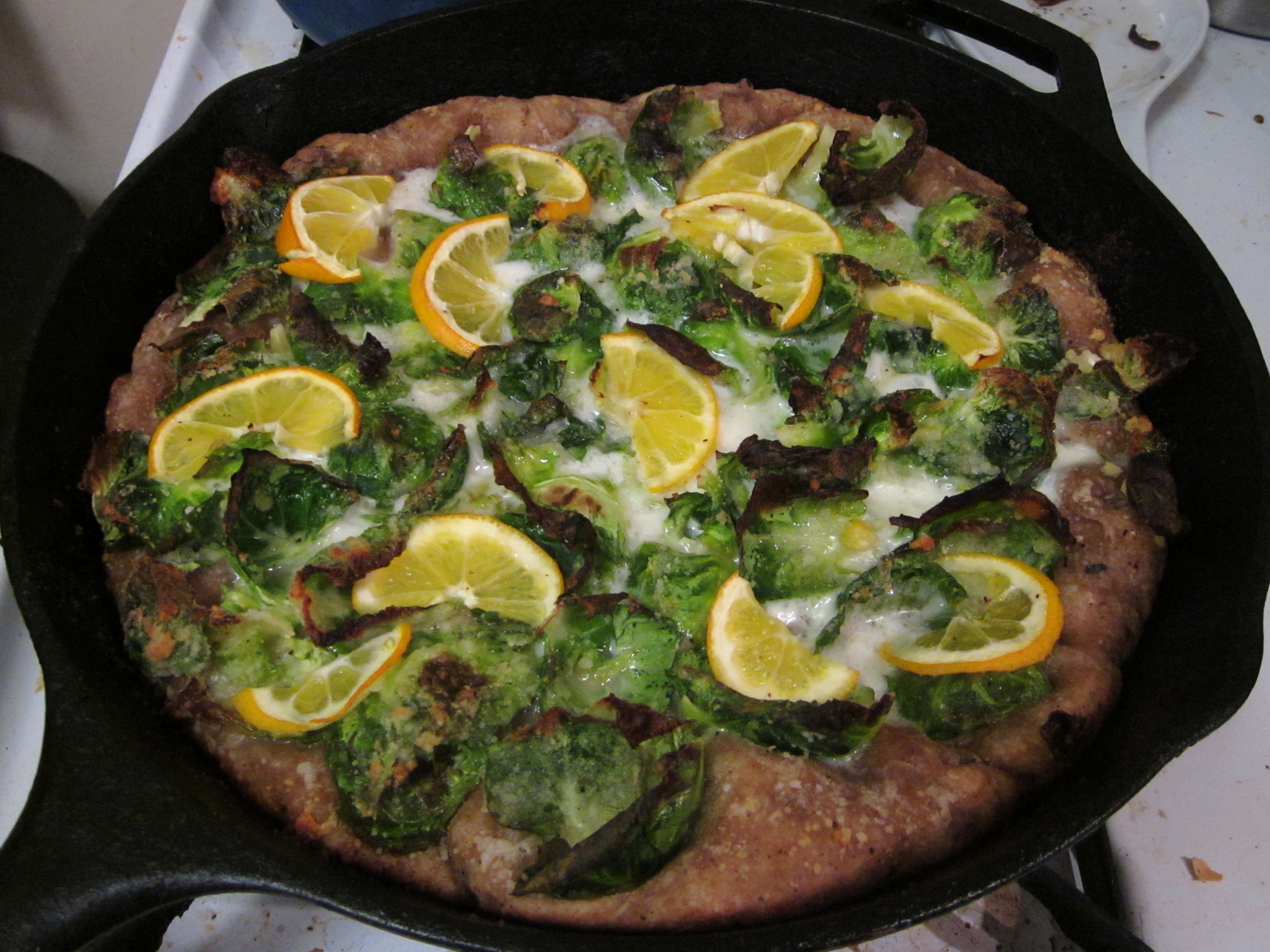 The best part about the bread, of course, is the taste! This bread has some of that nice sour flavor without being overpowering, and its spongy without being squishy or underdone. Sourdough is probably my favorite bread for toast, so I made toast with our homemade marmalade from Christmas, eggs (one over easy one scrambled cause I broke the yoke…), and tea with milk. It seemed a rather British brunch indeed: