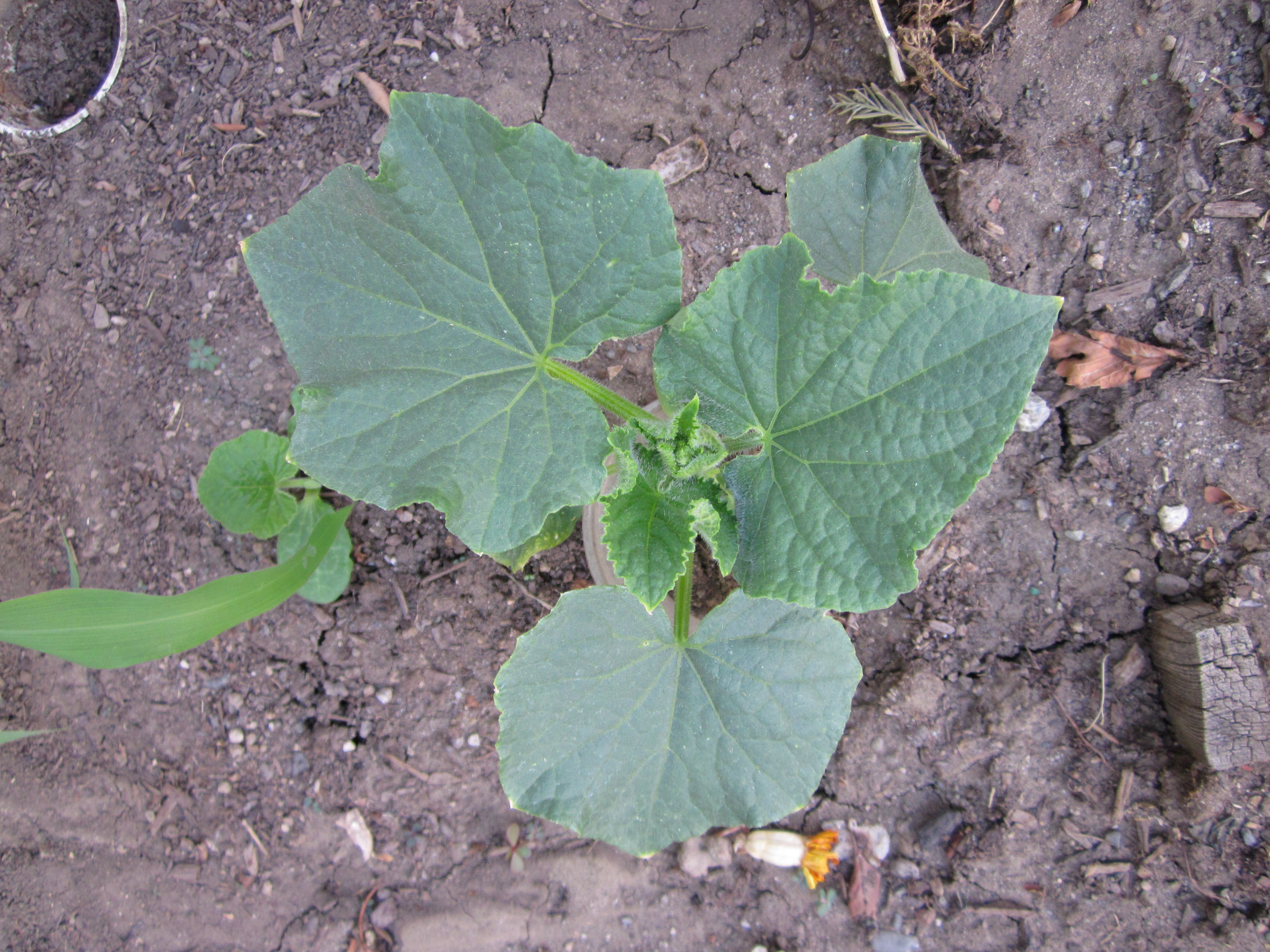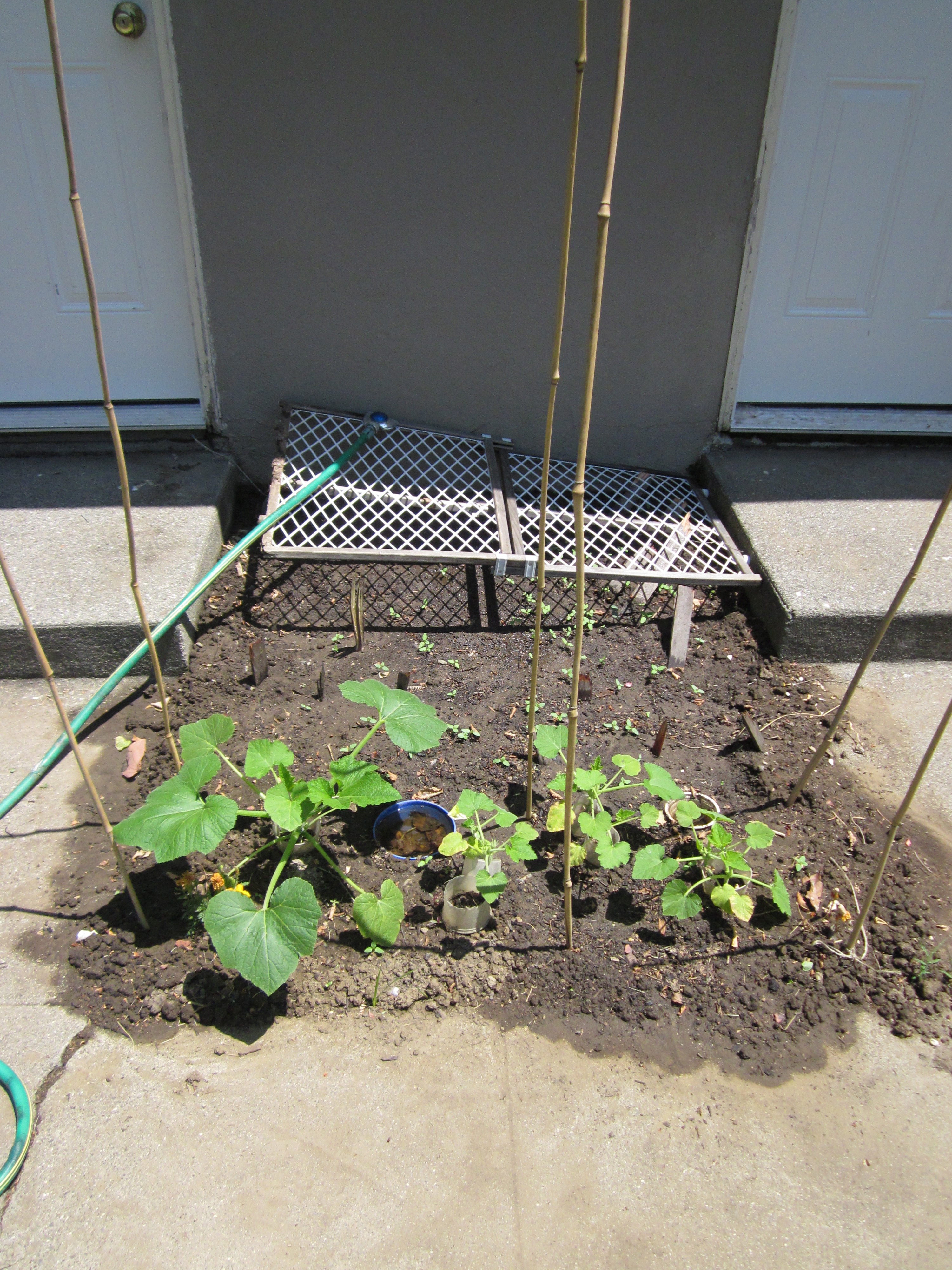 Garden plot 2, planted April 29: corn, beans, squash lemon cucumber