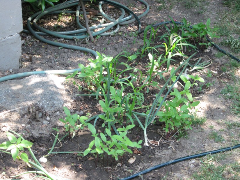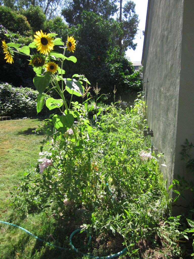 So here we are three weeks later and not much has changed. The sunflowers are taller but none have opened. I had to pull up the onions, but those should keep for a while. And the corn…got overshadowed by the sunflowers and appears to be stunted. Alas.