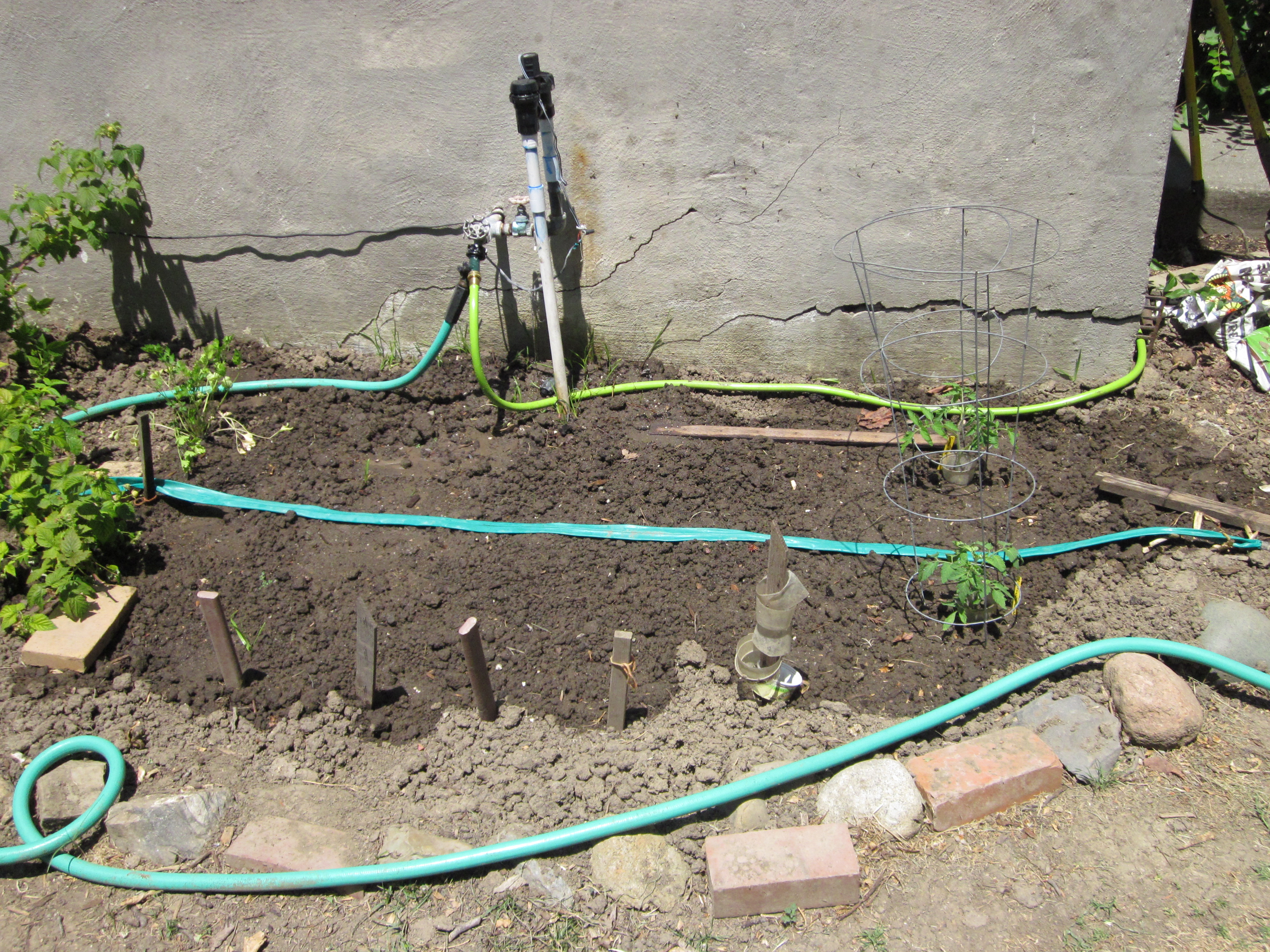 Garden Plot 4, planted May 13-?: tomatoes, bell peppers, cilantro and volunteers
