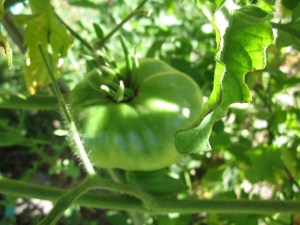 Holes—holes everywhere. I found the bugger (a tomato fruitworm, I believe) who was doing it—but not before he tasted tested half of my tomatoes. The first few that ripened rotted from mold that got in the holes. The one spot of good news is that I learned that some of the tomatoes are salvageable, if not always in the ripest state…